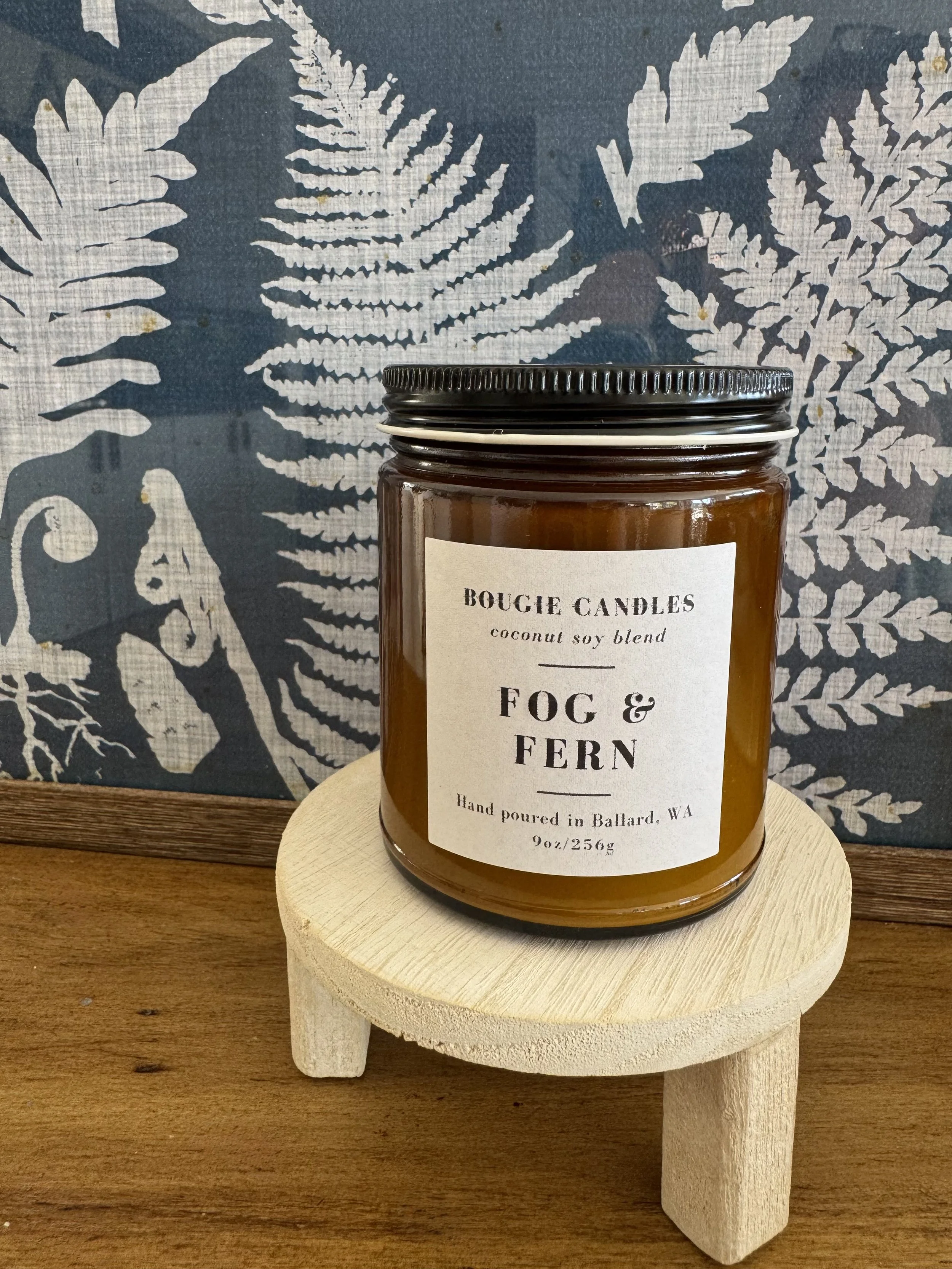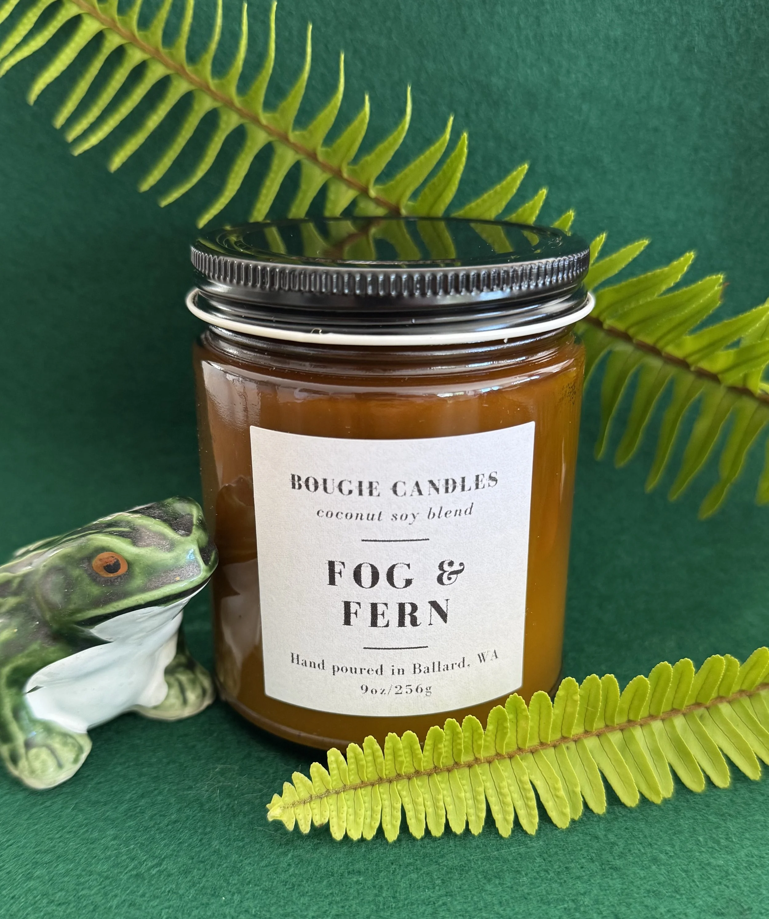 Fog & Fern smells like a misty woodland trail, with grounding notes of fern, damp earth, and evergreen. A calming, woodsy fragrance that feels like a quiet walk through the forest at dawn.